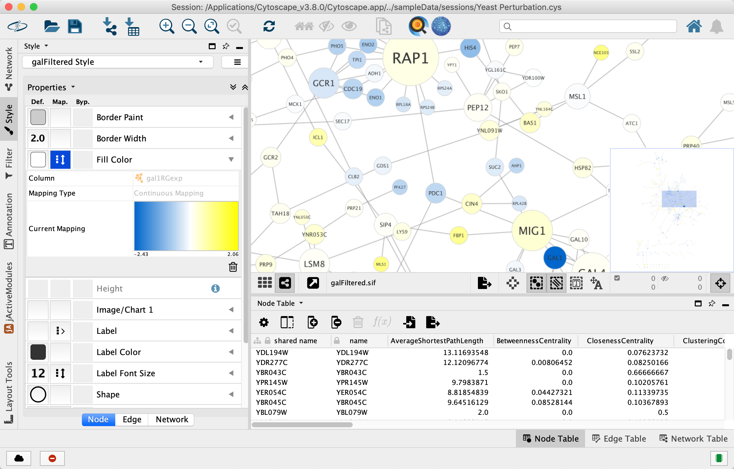 ビジュアルスタイルを変更する独自の視覚スタイルを作成して、STRINGネットワーク上の発現データを可視化してみましょう。 まずはデフォルトのスタイルから始めます。